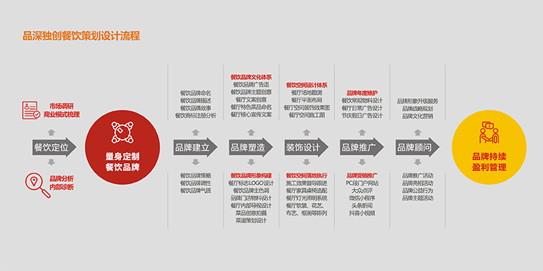 ;餐飲品牌定位;品牌淵源梳理;餐飲品牌故事;品牌形象VI設計;餐飲品牌形象設計;餐廳室內外空間設計;餐廳開業店慶活動設計服務;餐飲美食攝影;餐飲菜譜設計;餐飲連鎖店年度設計服務。