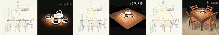 5、材質(zhì)、光束角度、光源色彩等靈活應(yīng)用。材質(zhì)不同,其中透明度、反射率、折射率、發(fā)光度等都不同。不同方向的燈光照射在同一物體上,表現(xiàn)出來的光澤和肌理也是不一樣,靈活駕馭光線的特點,可以讓餐廳墻面或者物體及軟裝陳設(shè)品產(chǎn)生豐富的光暈和肌理的變化。同一個光源,扣上不同型號的燈杯后,它可以產(chǎn)生大小不一的光斑,如果我們從燈體發(fā)散一條射線到達光斑邊緣,線與燈之間形成的角度就是光束角。相同功率的燈杯,光束角越大,中心光強越小,發(fā)散出的光斑越柔和;相反,光束角越小,中心光強越大,發(fā)散出的光斑越生硬。不同光束角打在墻上的光斑大小是不一樣的,一般20度以下的叫窄光束角,20~40度叫中光束角,40度以上叫寬光束角。在品深餐飲空間設(shè)計中,一般中餐廳的照明使用的光速角在37度,用光線可以覆蓋整個餐桌;而咖啡館喜歡用15度的光速角,光源聚焦在咖啡杯。