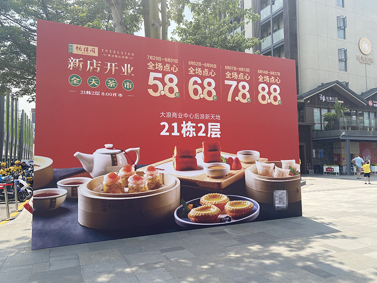 開業(yè)促銷活動頭三天必須把客人吸引進來,力度要狠,折扣要大。品深餐飲全案服務的悅得閑廣式點心茶樓,每家新店開業(yè)的頭3天都是5.8折,力度非常大,對顧客很有誘惑力,吸引力。悅得閑茶樓從2019年11月份到2021年9月的短短2年時間內(nèi),在深圳已經(jīng)開了10家店,每家店生意都很火爆,非常值得餐飲同行學習!