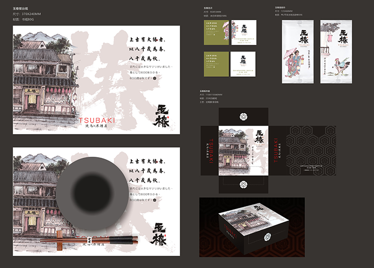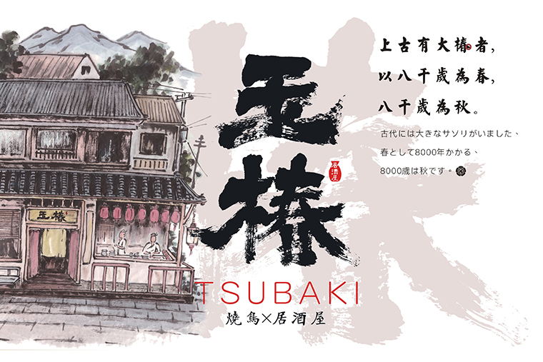我們希望透過這個書法文字的LOGO標識及輔助的家徽圖案塑造玉椿經典的日式美學氣質和料理文化底蘊。表達品牌傳承百年,初心如一的愿景,使之成為指引玉椿品牌前進的燈塔。玉椿燒鳥居酒屋,將“百年老店的美好愿景可視化,為顧客所信賴。
