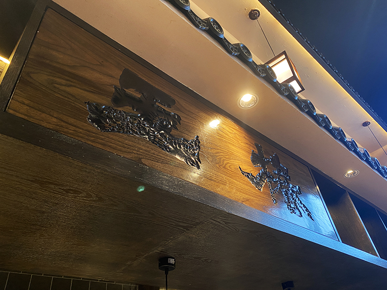 玉椿的門頭,使用京都古建筑的山墻造型,中間裝飾“椿”的家徽,既表達品牌名稱,又有強烈的復古氣質,極具江戶時代特征。
