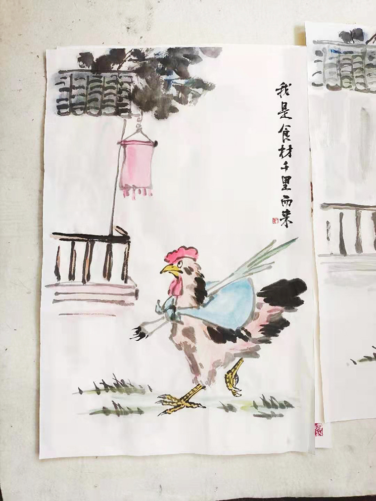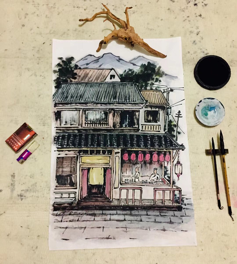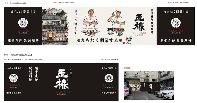 不僅如此,我們再用一批原創手繪圖形的表現方式,用中國國畫的繪畫技法將玉椿起源于京都、玉椿燒鳥的各種技法畫出來,形成了一套完整的品牌傳播視覺畫面,效果極為震撼。